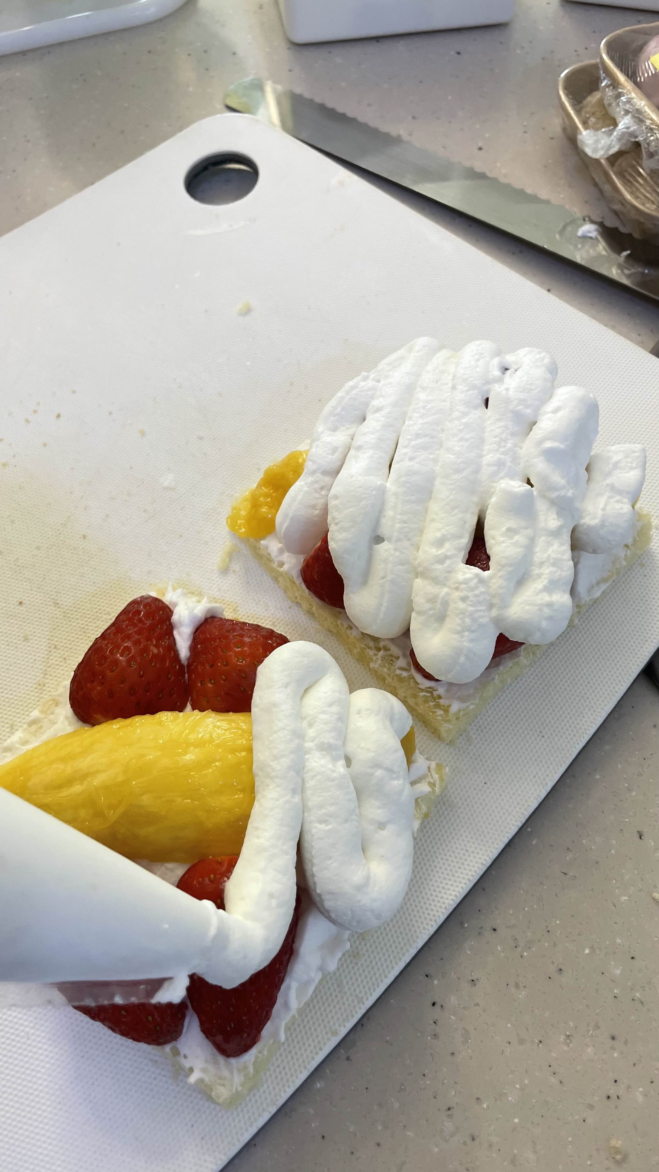 - 생크림은 단단하게 휘핑하면 모양이 예쁘게 나옵니다