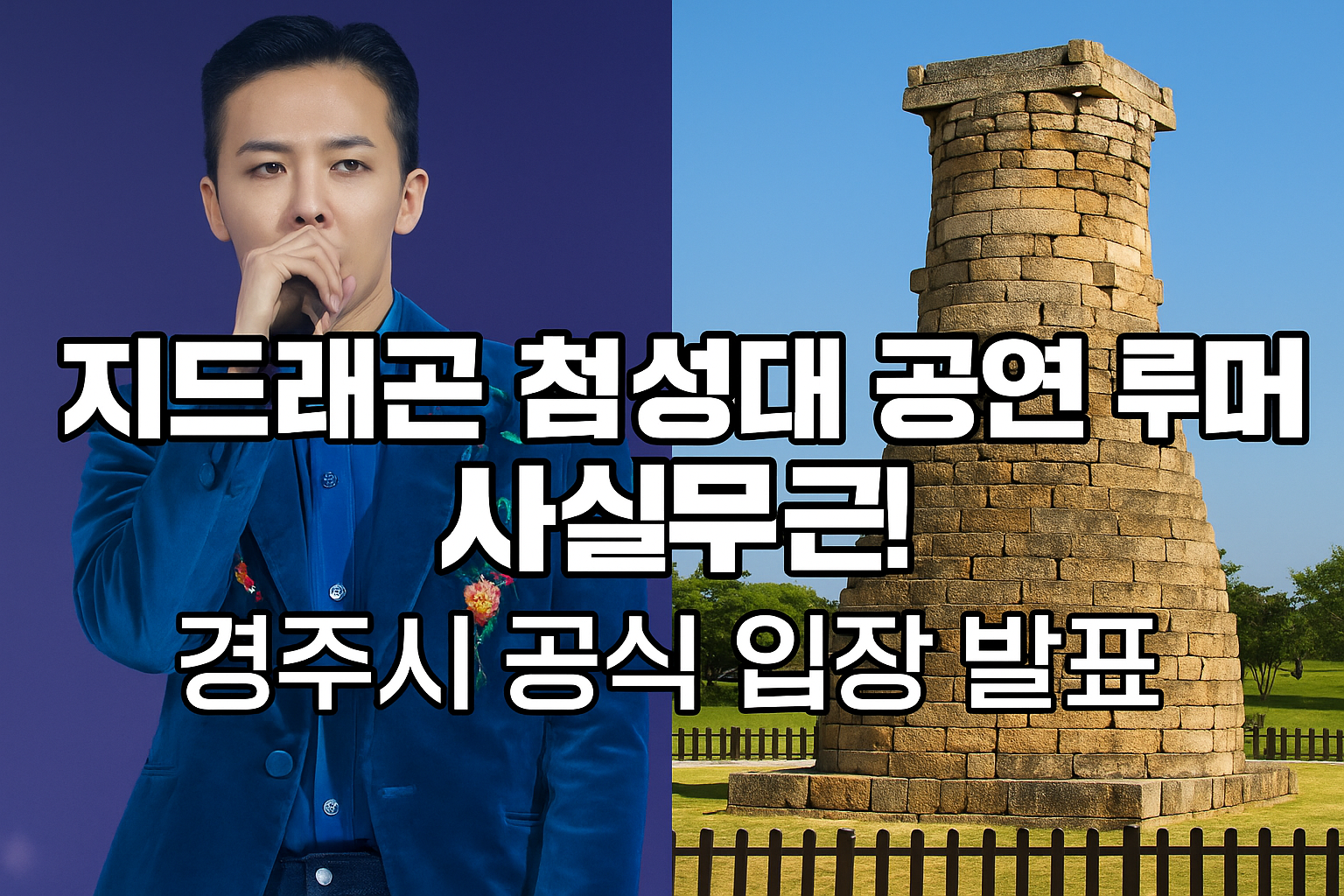 결론적으로, 지드래곤 첨성대 공연 루머는 사실무근이며 경주시 공식입장으로 명확히 아닙니다.